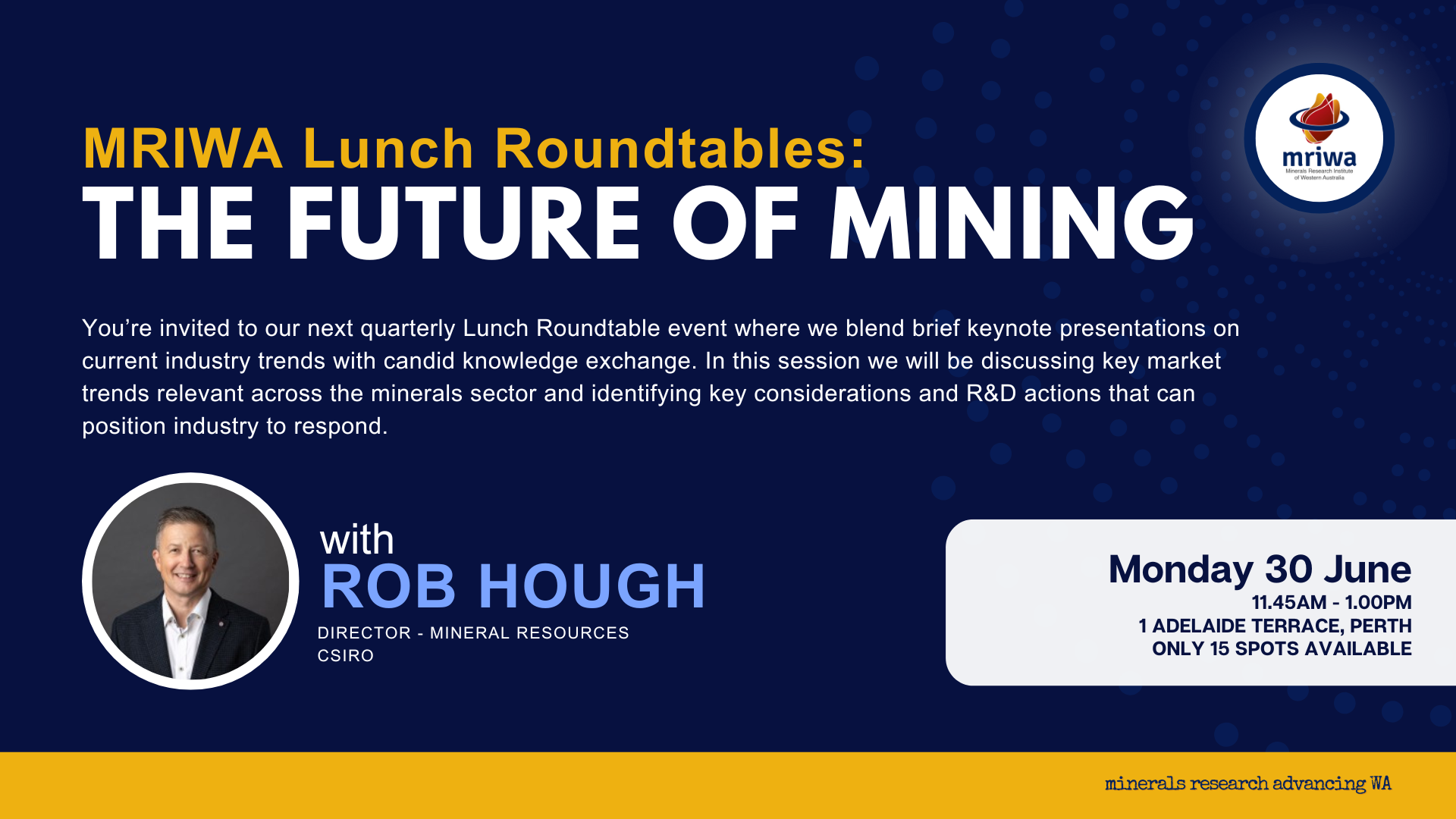 Learn more and register: MRIWA Lunch Roundtable: The Future of Mining